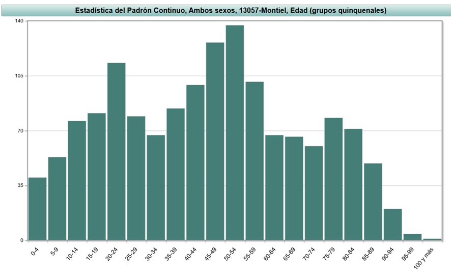 Es el caso de Montiel, una pequeña localidad al sur de la provincia de Ciudad Real. Con un censo de 1.167 habitantes en 2025, la mayor parte de la población se concentra en la franja comprendida entre los 49 y los 59 años. Además, existe una parte importante en el rango de los 75 a los 84 años.