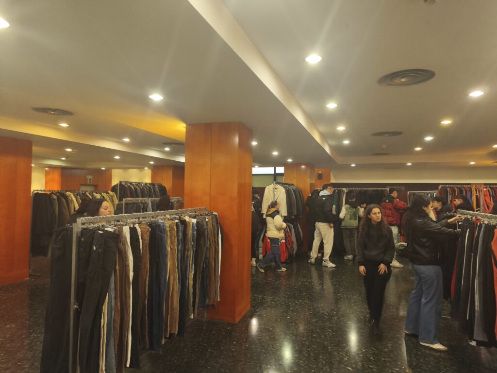 Entre los pasillos del recinto el ambiente era distendido y animado desde primera hora. Grupos de jóvenes revisaban los percheros repletos de camisetas, chaquetas y pantalones vintage. Más allá del componente estético el evento se presenta con una doble vertiente, la primera como una oportunidad de encontrar una prenda de gran calidad por un precio reducido, ya que todas las prendas costaban 10 euros, y por el otro lado como una alternativa al consumo de moda rápida. La venta de prendas de segunda mano es una respuesta de la juventud frente a los problemas derivados de la industria textil. Apostar por ropa ya existente reduce la producción de prendas nuevas y alarga la vida de prendas ya fabricadas. En ese sentido estos eventos funcionan como un punto de convergencia entre la estética y la conciencia ecológica, fomentando un consumo responsable.