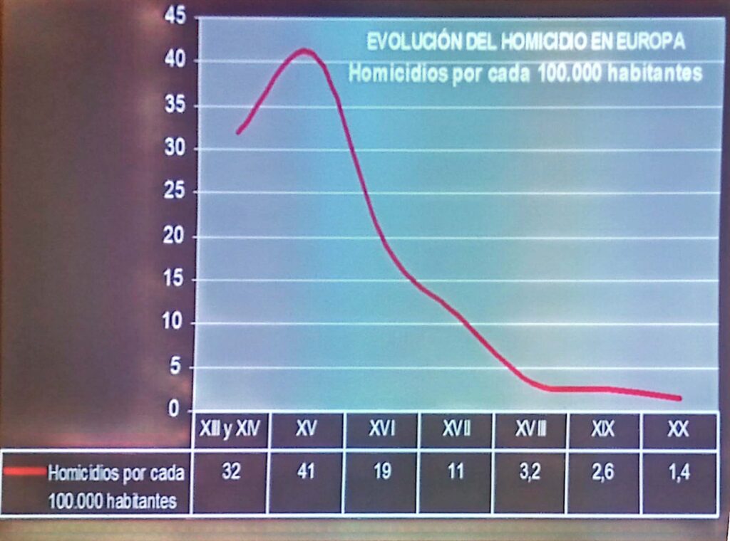 Suscribió las palabras del sociólogo Norbert Elias, que dijo que “el proceso de la civilización Y la progresiva consolidación de los Estados modernos contribuyó a monopolizar el uso legítimo de la violencia”, reduciéndose los homicidios.